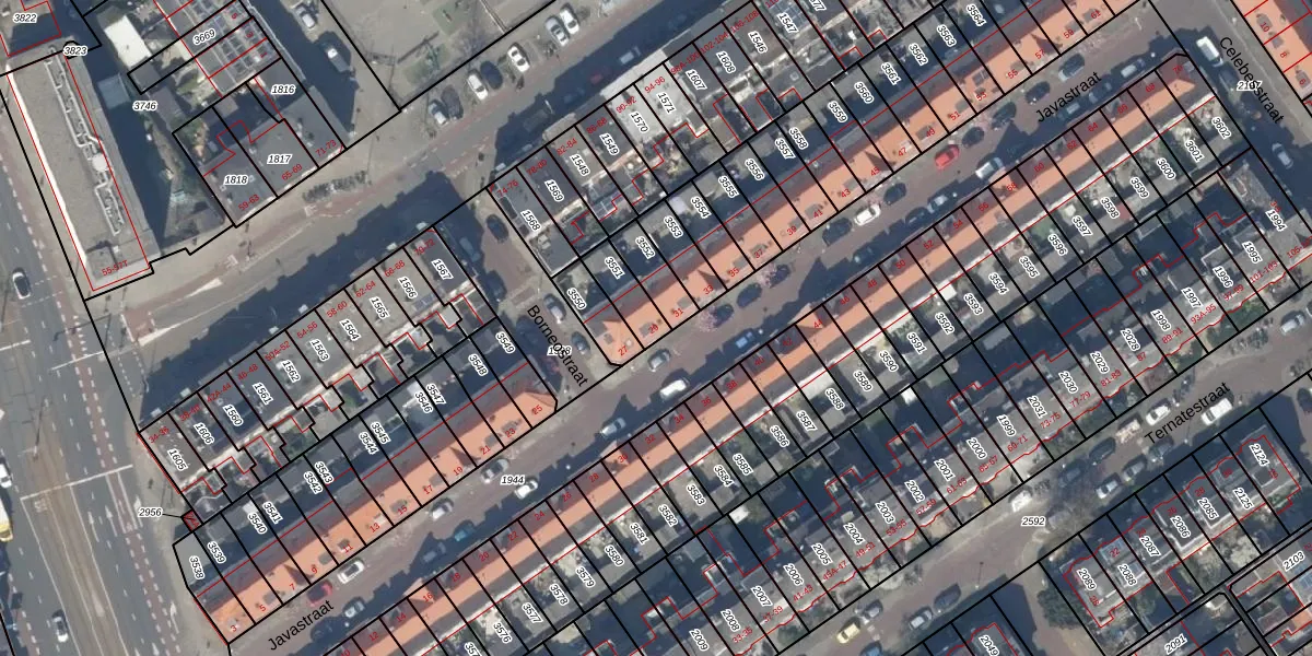 Het perceel waarop Javastraat 29 staat heeft een oppervlakte van 88 m². Dit is een klein perceel. De perceeloppervlakte wordt geregistreerd door het Kadaster. Gedetailleerde informatie over de maten van dit perceel kunt u vinden in het rapport Kadastrale kaart met maatvoering van Javastraat 29.