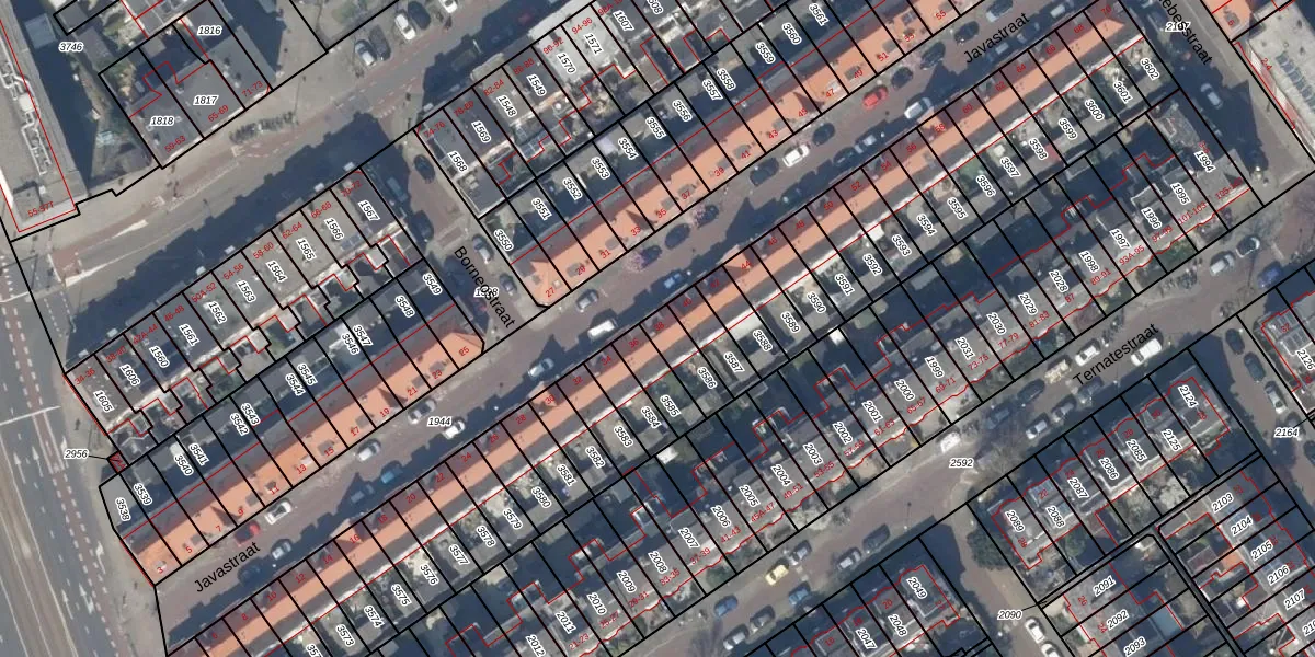 Het perceel waarop Javastraat 38 staat heeft een oppervlakte van 92 m². Dit is een klein perceel. De perceeloppervlakte wordt geregistreerd door het Kadaster. Gedetailleerde informatie over de maten van dit perceel kunt u vinden in het rapport Kadastrale kaart met maatvoering van Javastraat 38.