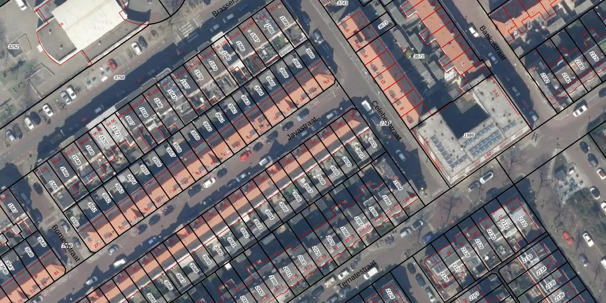 Het perceel waarop Javastraat 62 staat heeft een oppervlakte van 92 m². Dit is een klein perceel. De perceeloppervlakte wordt geregistreerd door het Kadaster. Gedetailleerde informatie over de maten van dit perceel kunt u vinden in het rapport Kadastrale kaart met maatvoering van Javastraat 62.
