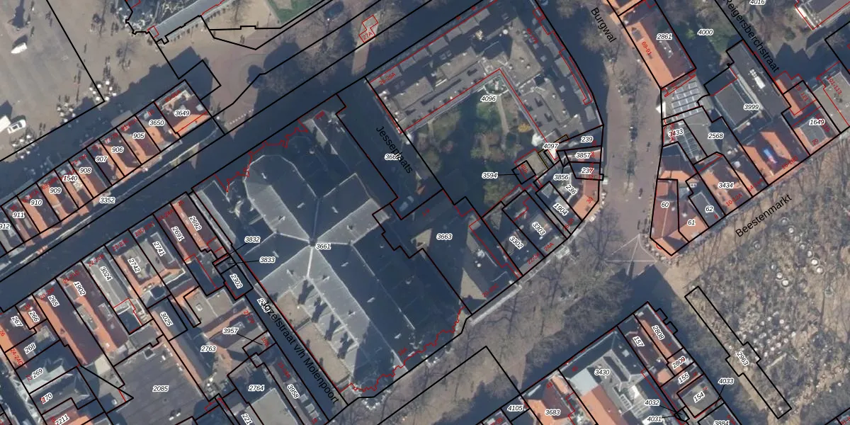 Jesseplaats 1 is gelegen op kadastraal perceel DEL00D3663. Deze kadastrale aanduiding is uniek en wordt gebruikt door het Kadaster om eigendomsrechten en andere zakelijke rechten vast te leggen. Het perceel maakt onderdeel uit van de kadastrale gemeente Delft.