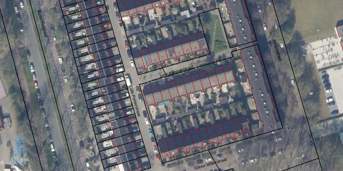 Het perceel waarop John Lennonstraat 8 staat heeft een oppervlakte van 3565 m². Dit is een zeer groot perceel. De perceeloppervlakte wordt geregistreerd door het Kadaster. Gedetailleerde informatie over de maten van dit perceel kunt u vinden in het rapport Kadastrale kaart met maatvoering van John Lennonstraat 8.