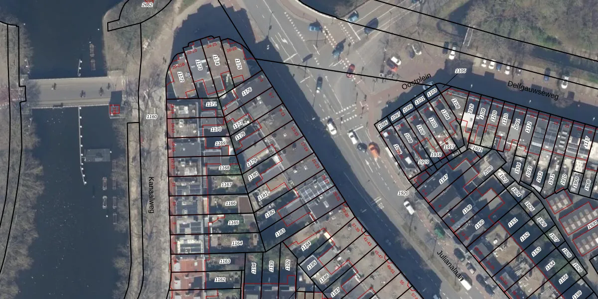 Julianalaan 19 is gelegen op kadastraal perceel DEL00P1180. Deze kadastrale aanduiding is uniek en wordt gebruikt door het Kadaster om eigendomsrechten en andere zakelijke rechten vast te leggen. Het perceel maakt onderdeel uit van de kadastrale gemeente Delft.