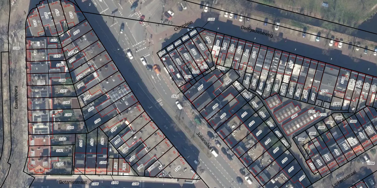 Julianalaan 2 is gelegen op kadastraal perceel DEL00P1147. Deze kadastrale aanduiding is uniek en wordt gebruikt door het Kadaster om eigendomsrechten en andere zakelijke rechten vast te leggen. Het perceel maakt onderdeel uit van de kadastrale gemeente Delft.