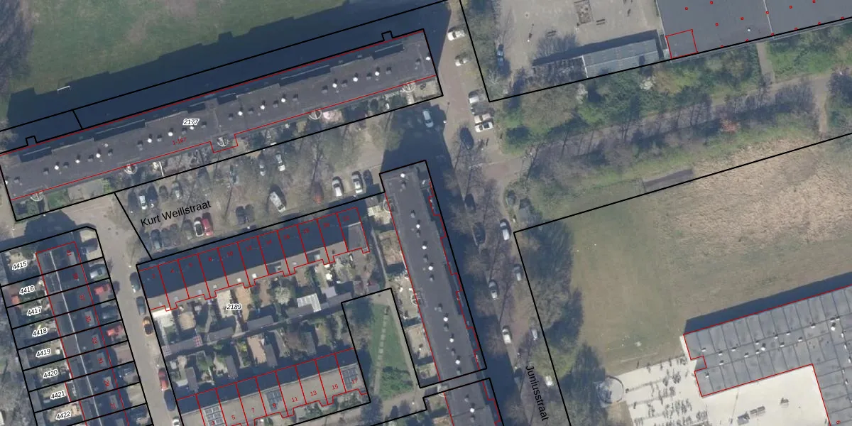 Het perceel waarop Juniusstraat 115 staat heeft een oppervlakte van 3105 m². Dit is een zeer groot perceel. De perceeloppervlakte wordt geregistreerd door het Kadaster. Gedetailleerde informatie over de maten van dit perceel kunt u vinden in het rapport Kadastrale kaart met maatvoering van Juniusstraat 115.
