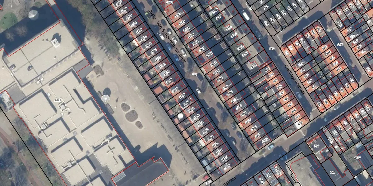 Justus van Schoonhovenstraat 21 is gelegen op kadastraal perceel DEL00O1730. Deze kadastrale aanduiding is uniek en wordt gebruikt door het Kadaster om eigendomsrechten en andere zakelijke rechten vast te leggen. Het perceel maakt onderdeel uit van de kadastrale gemeente Delft.
