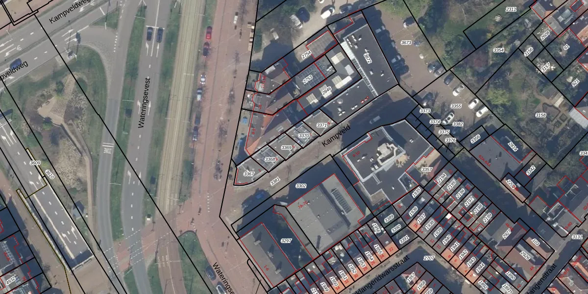 Kampveld 5 is gelegen op kadastraal perceel DEL00B3369. Deze kadastrale aanduiding is uniek en wordt gebruikt door het Kadaster om eigendomsrechten en andere zakelijke rechten vast te leggen. Het perceel maakt onderdeel uit van de kadastrale gemeente Delft.