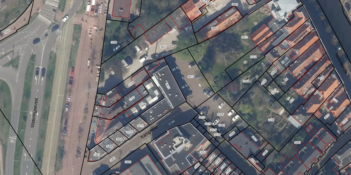Kampveld 57 is gelegen op kadastraal perceel DEL00B3672. Deze kadastrale aanduiding is uniek en wordt gebruikt door het Kadaster om eigendomsrechten en andere zakelijke rechten vast te leggen. Het perceel maakt onderdeel uit van de kadastrale gemeente Delft.