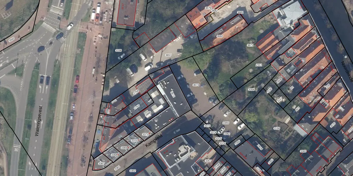 Kampveld 59 is gelegen op kadastraal perceel DEL00B3672. Deze kadastrale aanduiding is uniek en wordt gebruikt door het Kadaster om eigendomsrechten en andere zakelijke rechten vast te leggen. Het perceel maakt onderdeel uit van de kadastrale gemeente Delft.