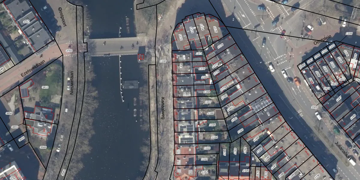Kanaalweg 13 is gelegen op kadastraal perceel DEL00P1168. Deze kadastrale aanduiding is uniek en wordt gebruikt door het Kadaster om eigendomsrechten en andere zakelijke rechten vast te leggen. Het perceel maakt onderdeel uit van de kadastrale gemeente Delft.