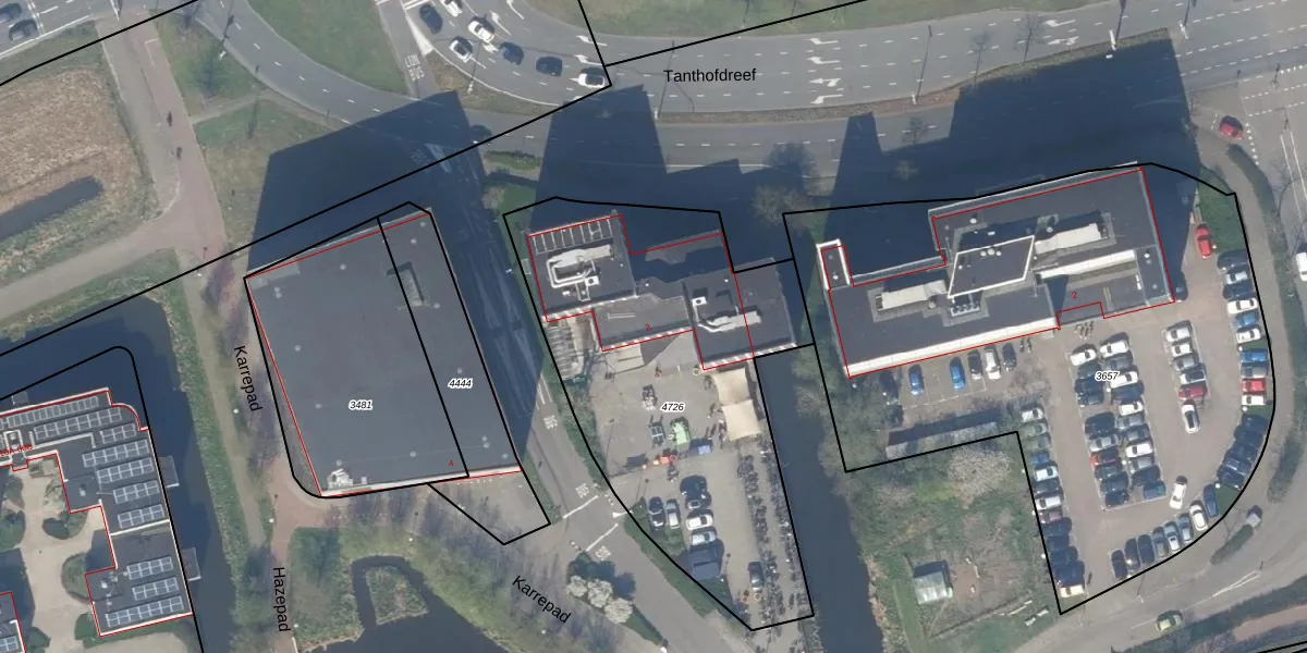 Het perceel waarop Karrepad 2 staat heeft een oppervlakte van 1870 m². Dit is een zeer groot perceel. De perceeloppervlakte wordt geregistreerd door het Kadaster. Gedetailleerde informatie over de maten van dit perceel kunt u vinden in het rapport Kadastrale kaart met maatvoering van Karrepad 2.