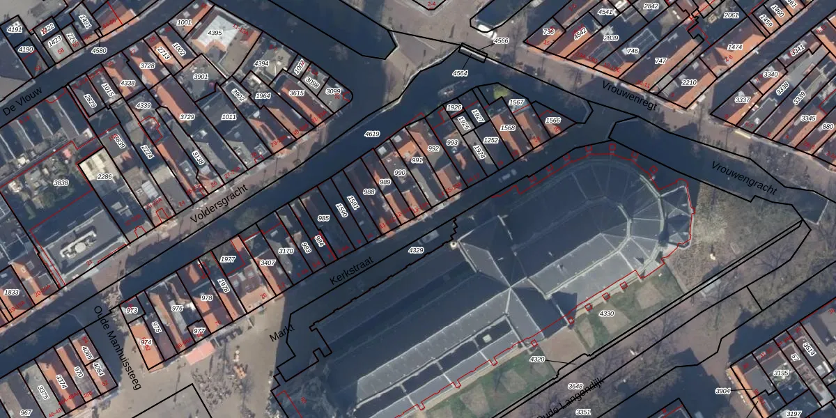 Kerkstraat 13 is gelegen op kadastraal perceel DEL00C990. Deze kadastrale aanduiding is uniek en wordt gebruikt door het Kadaster om eigendomsrechten en andere zakelijke rechten vast te leggen. Het perceel maakt onderdeel uit van de kadastrale gemeente Delft.