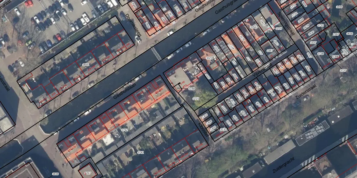 Het perceel waarop Klooster 38 staat heeft een oppervlakte van 13 m². Dit is een klein perceel. De perceeloppervlakte wordt geregistreerd door het Kadaster. Gedetailleerde informatie over de maten van dit perceel kunt u vinden in het rapport Kadastrale kaart met maatvoering van Klooster 38.