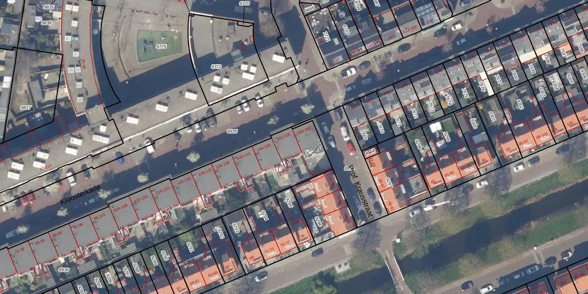 Kloosterkade 156 is gelegen op kadastraal perceel DEL00A8936. Deze kadastrale aanduiding is uniek en wordt gebruikt door het Kadaster om eigendomsrechten en andere zakelijke rechten vast te leggen. Het perceel maakt onderdeel uit van de kadastrale gemeente Delft.