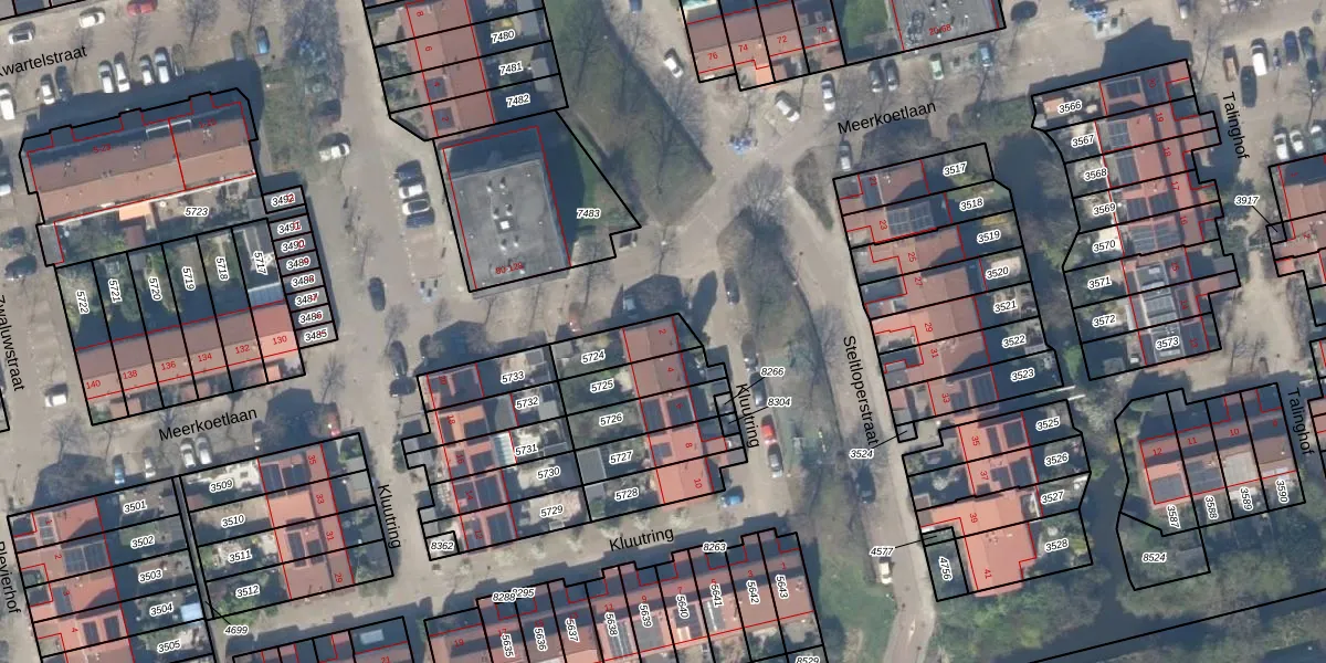 Gebruik de zoekbalk of klik op een perceel voor informatie over de adressen binnen dit perceel.