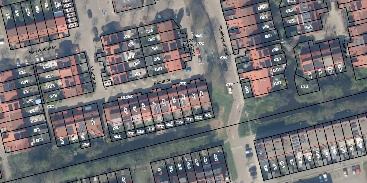Gebruik de zoekbalk of klik op een perceel voor informatie over de adressen binnen dit perceel.
