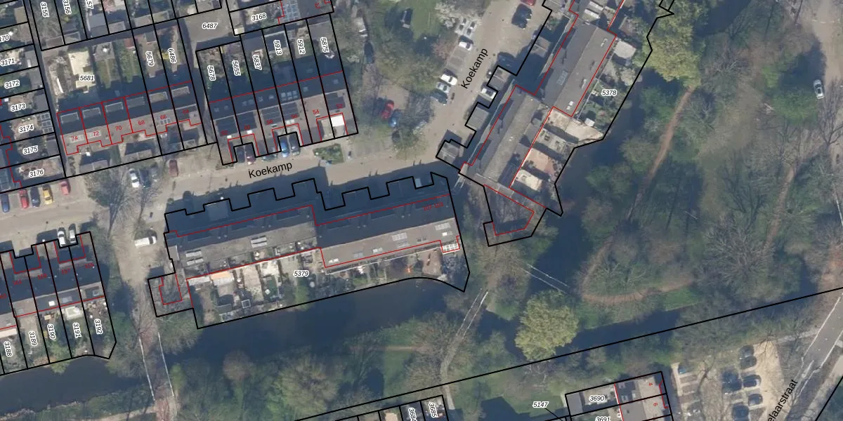 Koekamp 109 is gelegen op kadastraal perceel DEL00R5379. Deze kadastrale aanduiding is uniek en wordt gebruikt door het Kadaster om eigendomsrechten en andere zakelijke rechten vast te leggen. Het perceel maakt onderdeel uit van de kadastrale gemeente Delft.