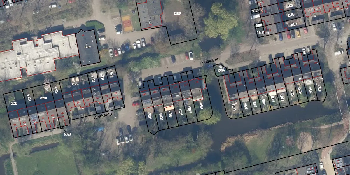 Het perceel waarop Koekamp 179 staat heeft een oppervlakte van 156 m². Dit is een middelgroot perceel. De perceeloppervlakte wordt geregistreerd door het Kadaster. Gedetailleerde informatie over de maten van dit perceel kunt u vinden in het rapport Kadastrale kaart met maatvoering van Koekamp 179.