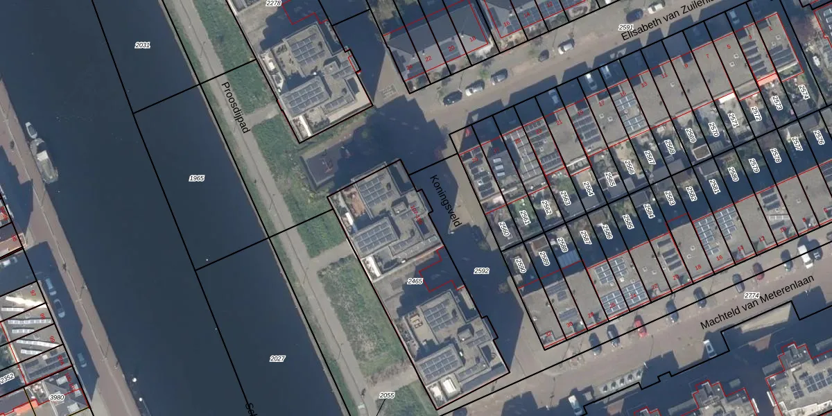 Het perceel waarop Koningsveld 129 staat heeft een oppervlakte van 1156 m². Dit is een zeer groot perceel. De perceeloppervlakte wordt geregistreerd door het Kadaster. Gedetailleerde informatie over de maten van dit perceel kunt u vinden in het rapport Kadastrale kaart met maatvoering van Koningsveld 129.