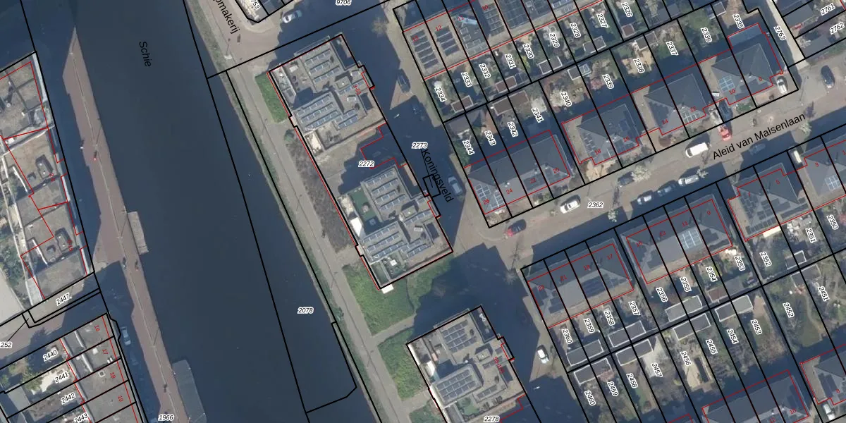 Koningsveld 43 is gelegen op kadastraal perceel DEL00K2272. Deze kadastrale aanduiding is uniek en wordt gebruikt door het Kadaster om eigendomsrechten en andere zakelijke rechten vast te leggen. Het perceel maakt onderdeel uit van de kadastrale gemeente Delft.