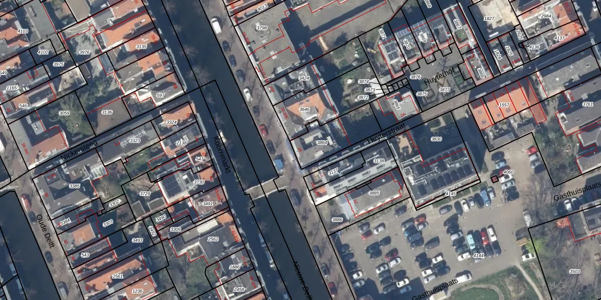 Koornmarkt 18-A is gelegen op kadastraal perceel DEL00D3864. Deze kadastrale aanduiding is uniek en wordt gebruikt door het Kadaster om eigendomsrechten en andere zakelijke rechten vast te leggen. Het perceel maakt onderdeel uit van de kadastrale gemeente Delft.