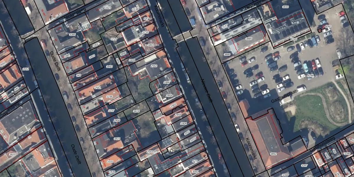 Koornmarkt 35-A is gelegen op kadastraal perceel DEL00E2458. Deze kadastrale aanduiding is uniek en wordt gebruikt door het Kadaster om eigendomsrechten en andere zakelijke rechten vast te leggen. Het perceel maakt onderdeel uit van de kadastrale gemeente Delft.