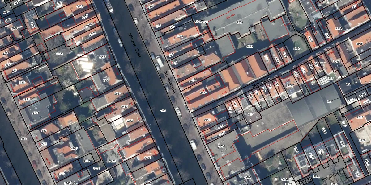 Koornmarkt 38-B is gelegen op kadastraal perceel DEL00D3447. Deze kadastrale aanduiding is uniek en wordt gebruikt door het Kadaster om eigendomsrechten en andere zakelijke rechten vast te leggen. Het perceel maakt onderdeel uit van de kadastrale gemeente Delft.