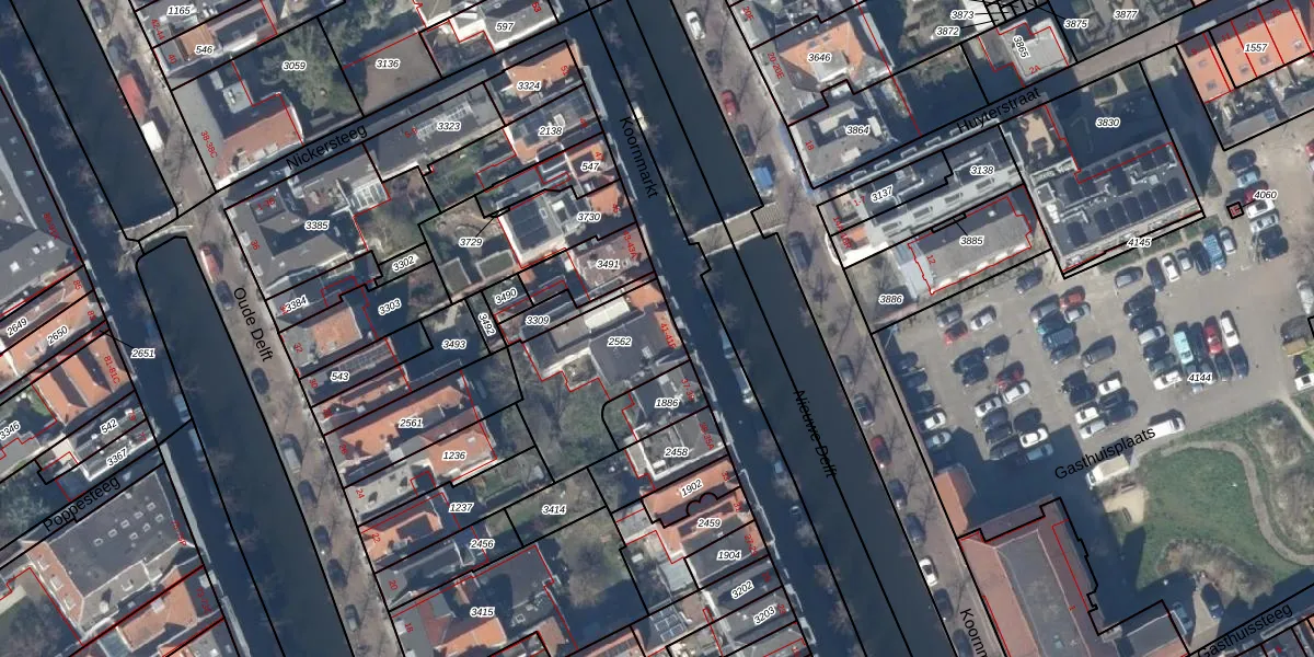 Koornmarkt 41 is gelegen op kadastraal perceel DEL00E2562. Deze kadastrale aanduiding is uniek en wordt gebruikt door het Kadaster om eigendomsrechten en andere zakelijke rechten vast te leggen. Het perceel maakt onderdeel uit van de kadastrale gemeente Delft.