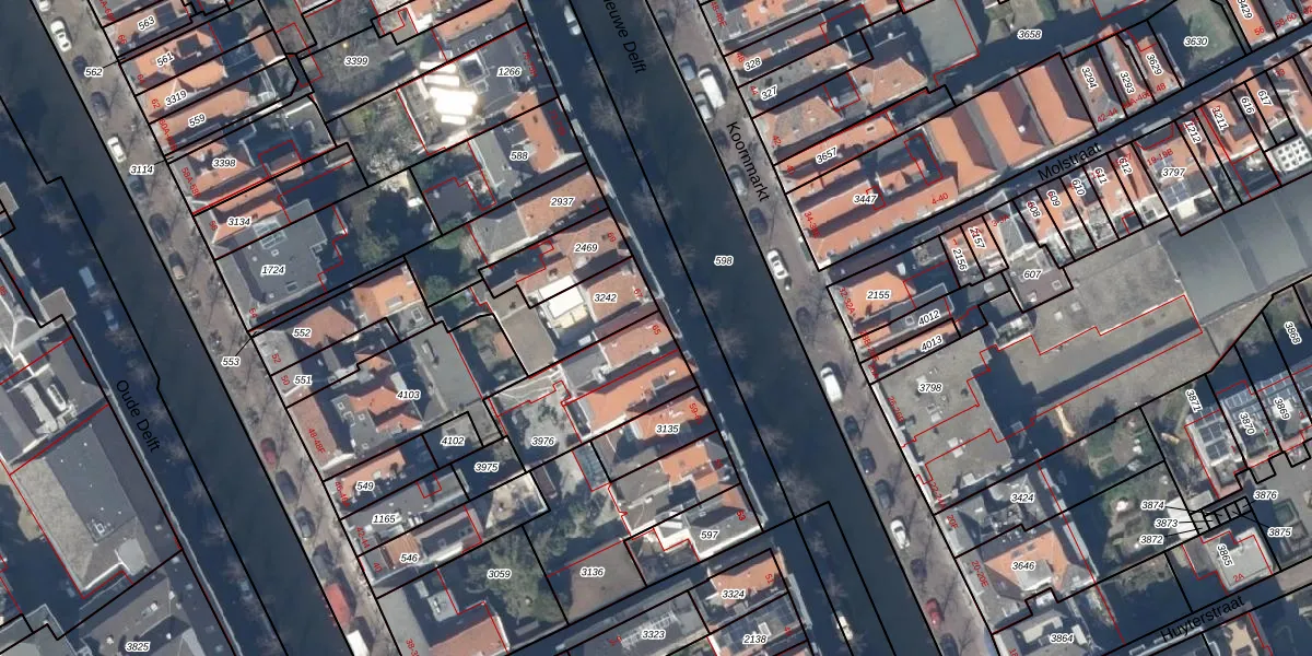 Koornmarkt 65 is gelegen op kadastraal perceel DEL00D3976. Deze kadastrale aanduiding is uniek en wordt gebruikt door het Kadaster om eigendomsrechten en andere zakelijke rechten vast te leggen. Het perceel maakt onderdeel uit van de kadastrale gemeente Delft.
