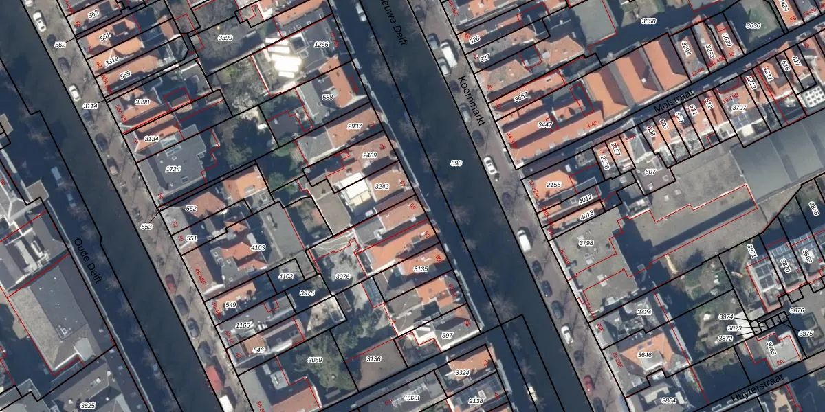 Koornmarkt 65 is gelegen op kadastraal perceel DEL00D3976. Deze kadastrale aanduiding is uniek en wordt gebruikt door het Kadaster om eigendomsrechten en andere zakelijke rechten vast te leggen. Het perceel maakt onderdeel uit van de kadastrale gemeente Delft.