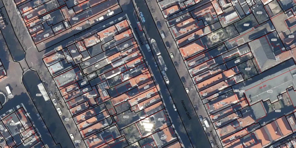 Het perceel waarop het adres ligt is DEL00-D-3483. De afkorting 'DEL00' staat voor kadastrale gemeente Delft. Het perceel is kleiner dan gemiddeld in Delft. Het perceel is 214 m² groot, terwijl het gemiddelde ligt op 924,69 m². De grootste perceeloppervlakte in de kadastrale gemeente is 64,1 ha. De kleinste oppervlakte bedraagt 0 m². Er zijn 7 adressen aanwezig op het perceel. De laatste wijziging in het de Basisregistratie Kadaster (BRK) was op 16-12-2003.