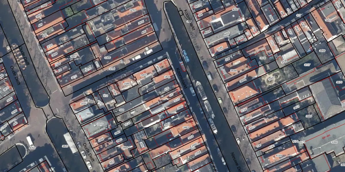 Koornmarkt 99 is gelegen op kadastraal perceel DEL00D576. Deze kadastrale aanduiding is uniek en wordt gebruikt door het Kadaster om eigendomsrechten en andere zakelijke rechten vast te leggen. Het perceel maakt onderdeel uit van de kadastrale gemeente Delft.