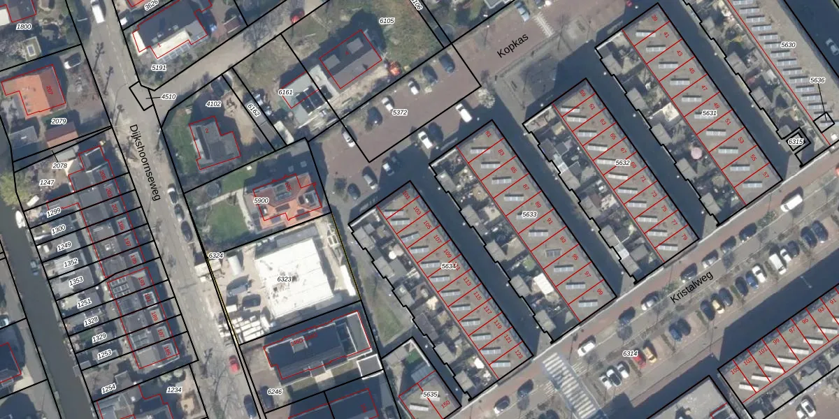 Het perceel waarop Kopkas 103 staat heeft een oppervlakte van 934 m². Dit is een groot perceel. De perceeloppervlakte wordt geregistreerd door het Kadaster. Gedetailleerde informatie over de maten van dit perceel kunt u vinden in het rapport Kadastrale kaart met maatvoering van Kopkas 103.