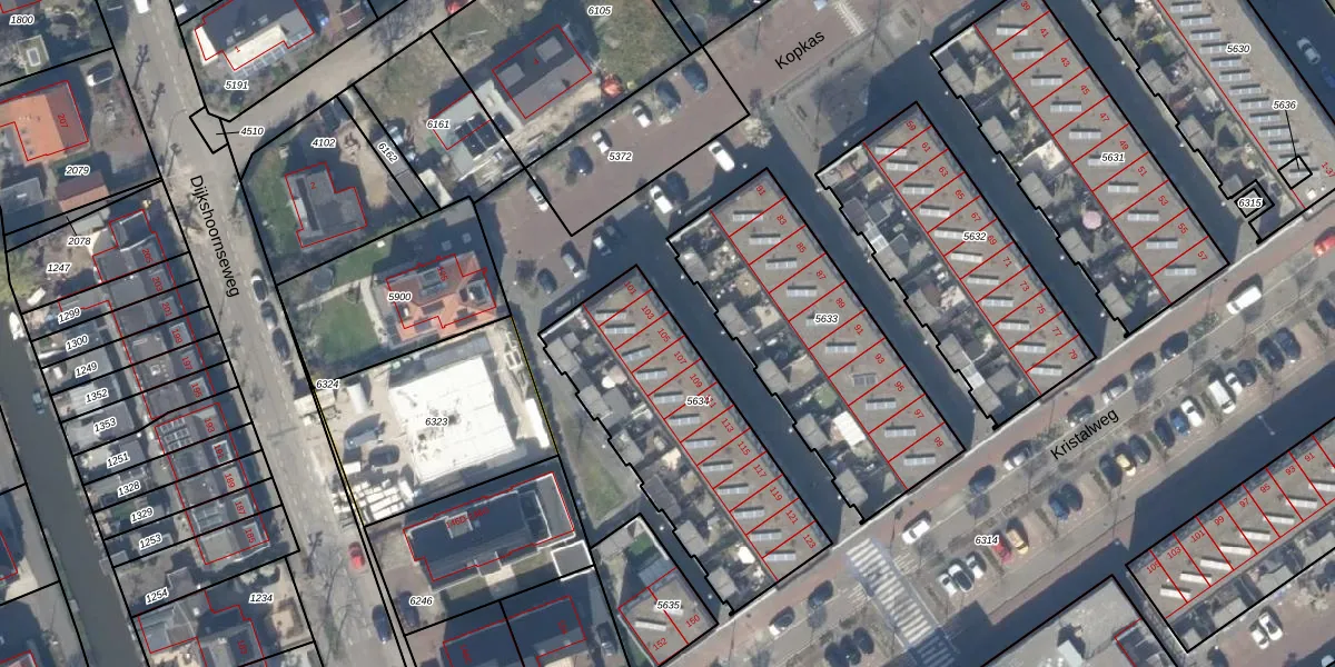 Het perceel waarop Kopkas 105 staat heeft een oppervlakte van 934 m². Dit is een groot perceel. De perceeloppervlakte wordt geregistreerd door het Kadaster. Gedetailleerde informatie over de maten van dit perceel kunt u vinden in het rapport Kadastrale kaart met maatvoering van Kopkas 105.