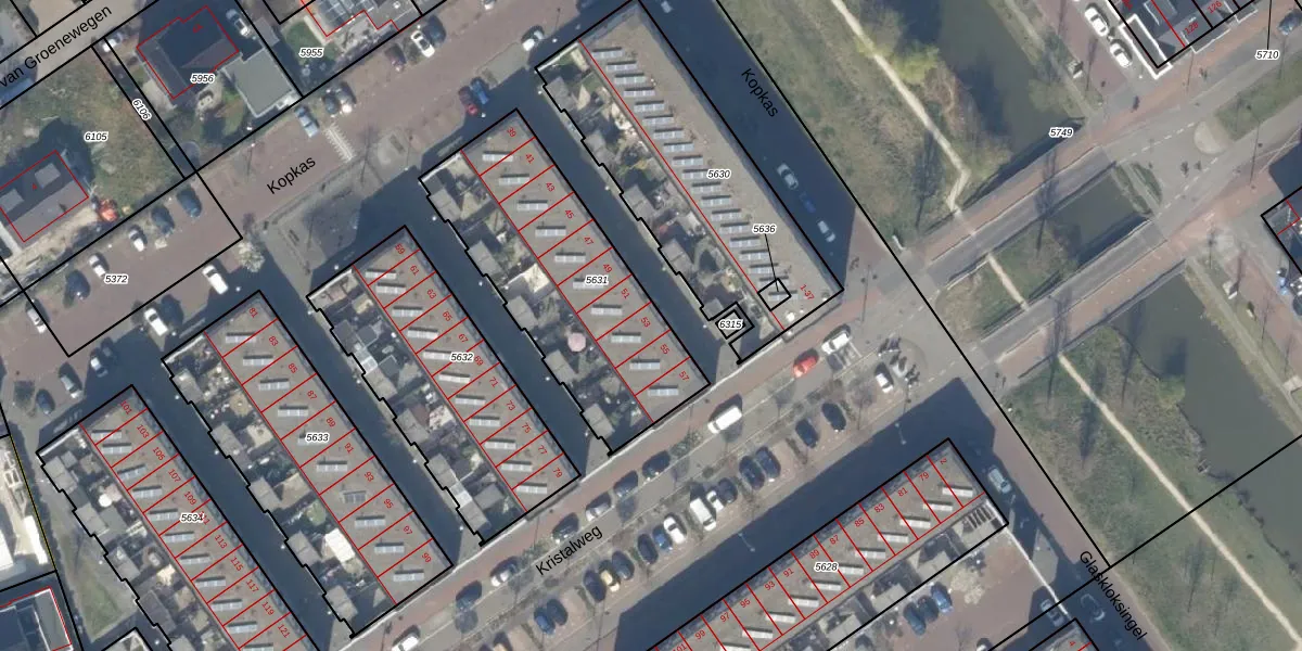 Het perceel waarop Kopkas 53 staat heeft een oppervlakte van 962 m². Dit is een groot perceel. De perceeloppervlakte wordt geregistreerd door het Kadaster. Gedetailleerde informatie over de maten van dit perceel kunt u vinden in het rapport Kadastrale kaart met maatvoering van Kopkas 53.