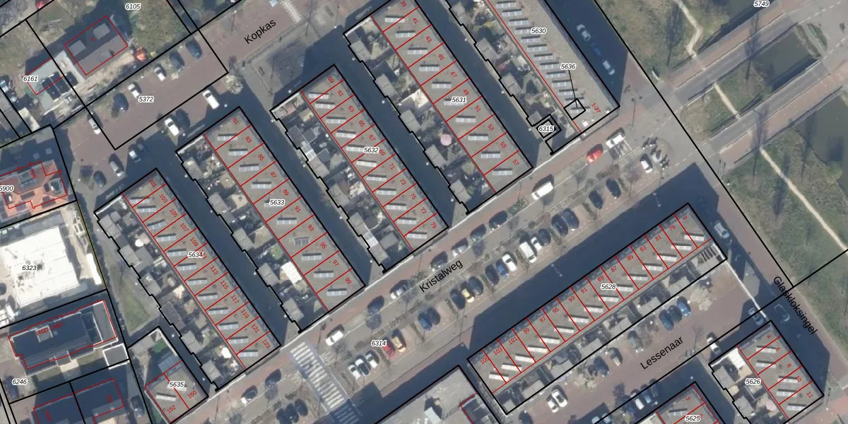 Het perceel waarop Kopkas 77 staat heeft een oppervlakte van 857 m². Dit is een groot perceel. De perceeloppervlakte wordt geregistreerd door het Kadaster. Gedetailleerde informatie over de maten van dit perceel kunt u vinden in het rapport Kadastrale kaart met maatvoering van Kopkas 77.