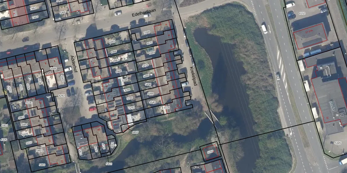 Gebruik de zoekbalk of klik op een perceel voor informatie over de adressen binnen dit perceel.