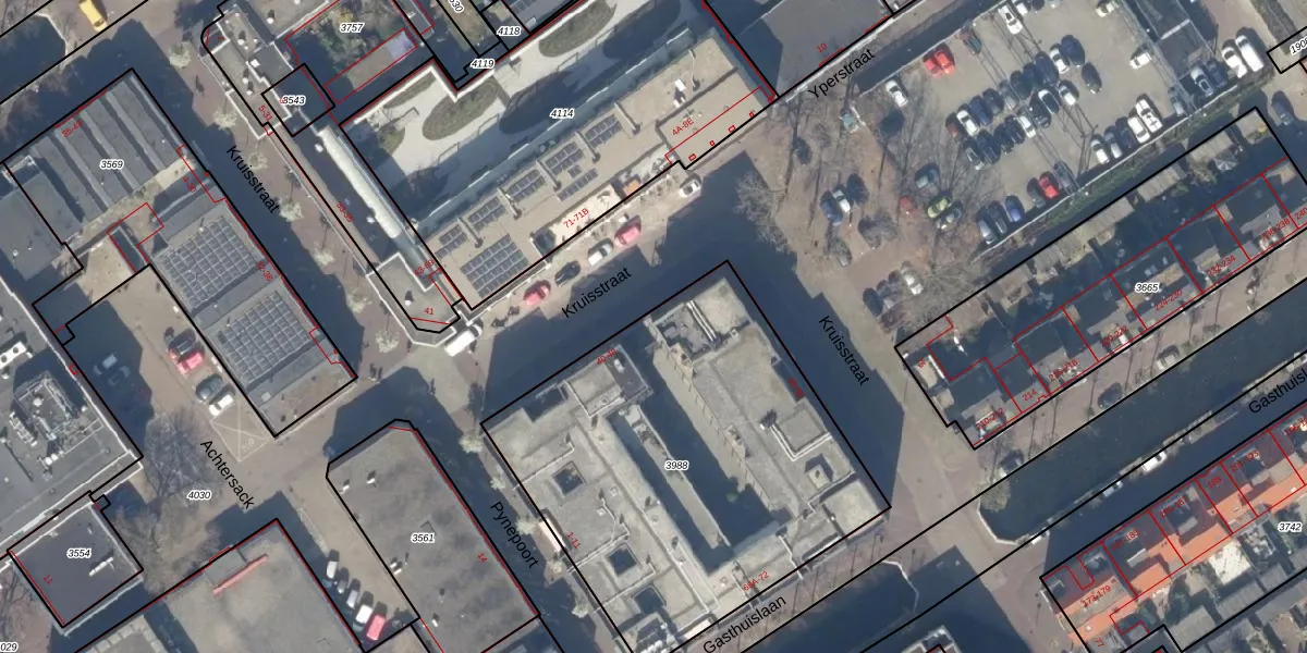 Kruisstraat 48 is gelegen op kadastraal perceel DEL00D3988. Deze kadastrale aanduiding is uniek en wordt gebruikt door het Kadaster om eigendomsrechten en andere zakelijke rechten vast te leggen. Het perceel maakt onderdeel uit van de kadastrale gemeente Delft.