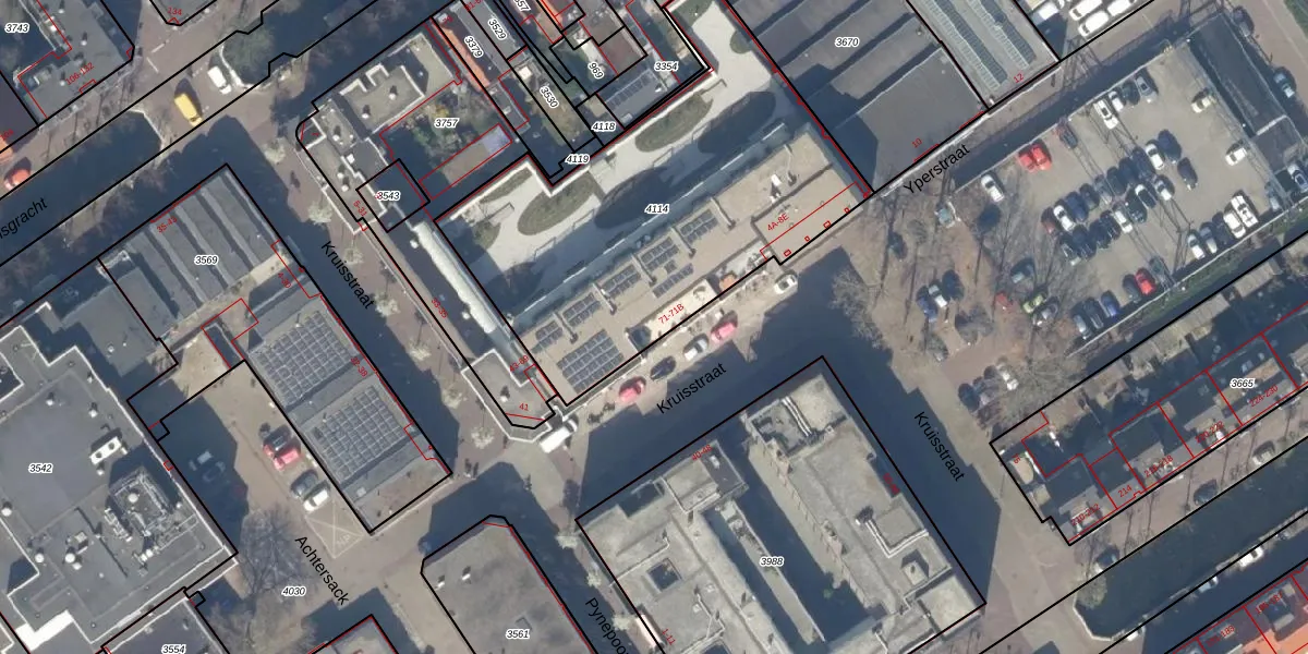 Kruisstraat 71-A is gelegen op kadastraal perceel DEL00D4114. Deze kadastrale aanduiding is uniek en wordt gebruikt door het Kadaster om eigendomsrechten en andere zakelijke rechten vast te leggen. Het perceel maakt onderdeel uit van de kadastrale gemeente Delft.