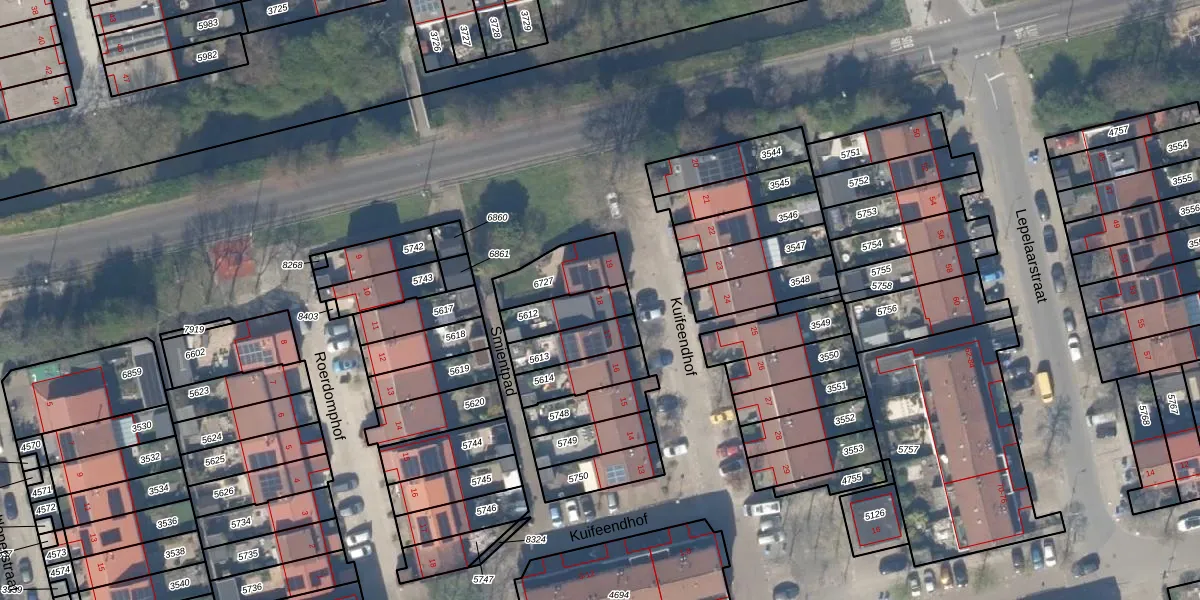 Het adres is gelegen op perceel 5612 in de sectie R en de kadastrale gemeente Delft. De kadastrale aanduiding is aldus DEL00-R-5612. De gemiddelde perceelgrootte in Delft is 923,41 m². Dit perceel is kleiner: de perceeloppervlakte bedraagt 119 m². Het grootste perceel in de kadastrale gemeente is 64,1 ha. Het kleinste perceel heeft een oppervlakte van 0 m². Op het perceel bevinden zich geen andere adressen. De huidige grenzen van het perceel zijn digitaal in de Basisregistratie Kadaster (BRK) geregistreerd op 02-01-2008.