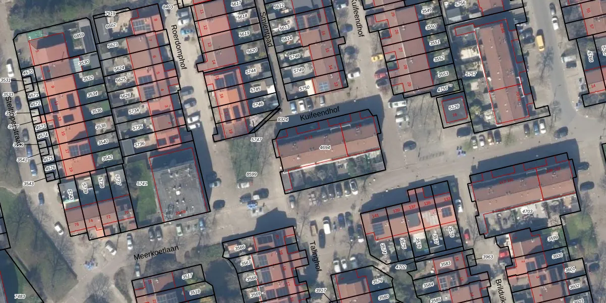 Kuifeendhof 5 is gelegen op kadastraal perceel DEL00R4694. Deze kadastrale aanduiding is uniek en wordt gebruikt door het Kadaster om eigendomsrechten en andere zakelijke rechten vast te leggen. Het perceel maakt onderdeel uit van de kadastrale gemeente Delft.