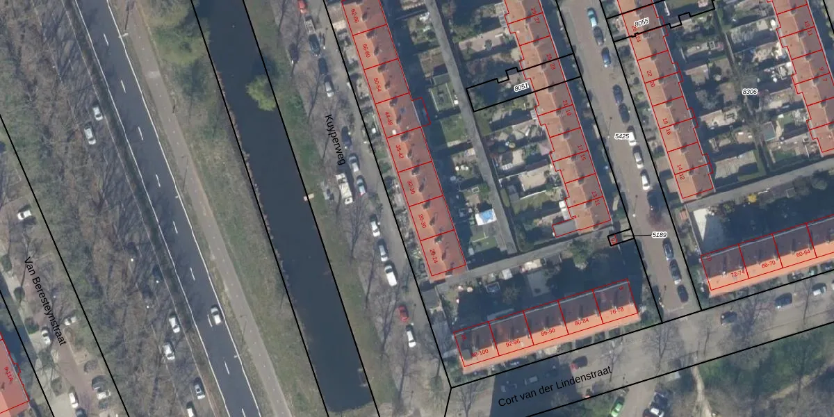 Het perceel waarop het adres ligt is DEL00-F-8052. De afkorting 'DEL00' staat voor kadastrale gemeente Delft. De gemiddelde perceeloppervlakte in de kadastrale gemeente Delft is 923,41 m². Dit perceel is met zijn 6563 m² dus groter dan gemiddeld. De grootste perceeloppervlakte in de kadastrale gemeente is 64,1 ha. De kleinste oppervlakte bedraagt 0 m². Op het perceel zijn 66 adressen aanwezig. De huidige grenzen van het perceel zijn digitaal in de Basisregistratie Kadaster (BRK) geregistreerd op 04-11-2013.