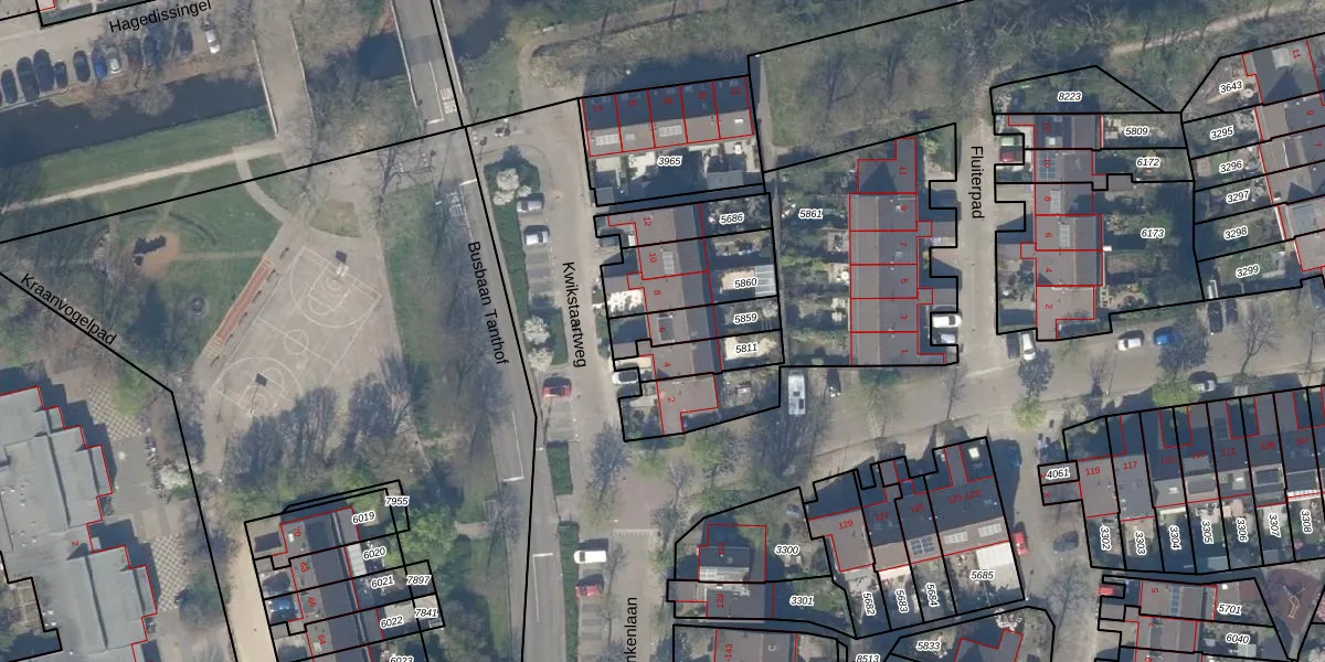Gebruik de zoekbalk of klik op een perceel voor informatie over de adressen binnen dit perceel.