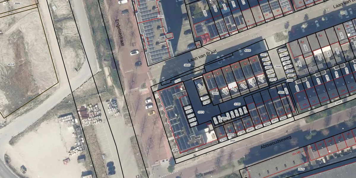 Laan van Braat 4-D is gelegen op kadastraal perceel DEL00O3808. Deze kadastrale aanduiding is uniek en wordt gebruikt door het Kadaster om eigendomsrechten en andere zakelijke rechten vast te leggen. Het perceel maakt onderdeel uit van de kadastrale gemeente Delft.