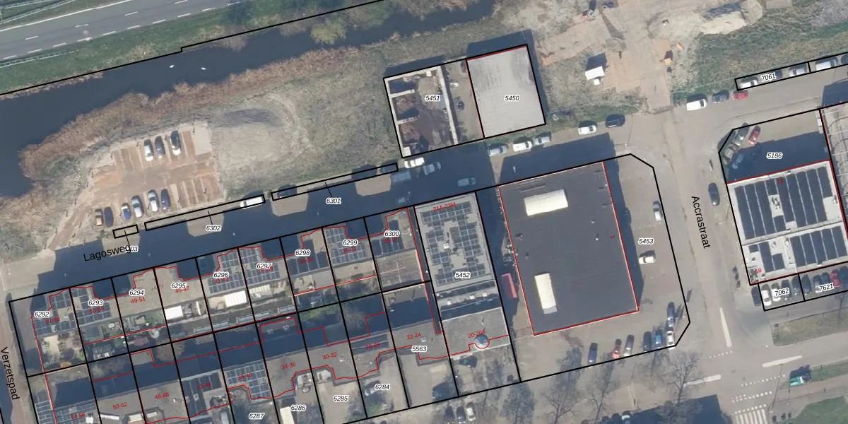 Het perceel waarop Lagosweg 23-E staat heeft een oppervlakte van 696 m². Dit is een groot perceel. De perceeloppervlakte wordt geregistreerd door het Kadaster. Gedetailleerde informatie over de maten van dit perceel kunt u vinden in het rapport Kadastrale kaart met maatvoering van Lagosweg 23-E.