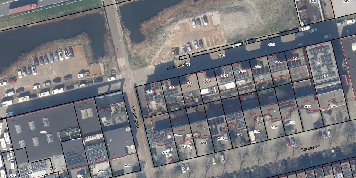 Lagosweg 53 is gelegen op kadastraal perceel DEL00R6293. Deze kadastrale aanduiding is uniek en wordt gebruikt door het Kadaster om eigendomsrechten en andere zakelijke rechten vast te leggen. Het perceel maakt onderdeel uit van de kadastrale gemeente Delft.