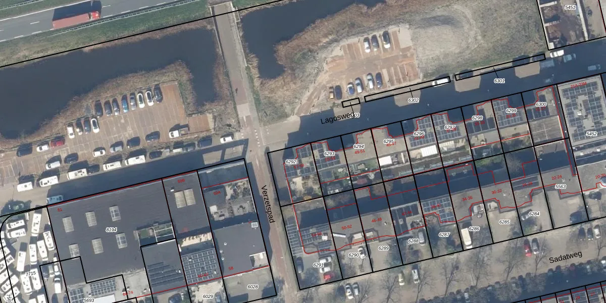 Lagosweg 57 is gelegen op kadastraal perceel DEL00R6292. Deze kadastrale aanduiding is uniek en wordt gebruikt door het Kadaster om eigendomsrechten en andere zakelijke rechten vast te leggen. Het perceel maakt onderdeel uit van de kadastrale gemeente Delft.