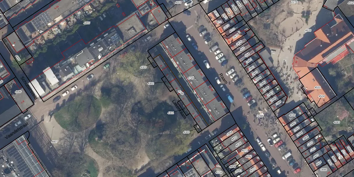 Lakenraam 4 is gelegen op kadastraal perceel DEL00C4748. Deze kadastrale aanduiding is uniek en wordt gebruikt door het Kadaster om eigendomsrechten en andere zakelijke rechten vast te leggen. Het perceel maakt onderdeel uit van de kadastrale gemeente Delft.