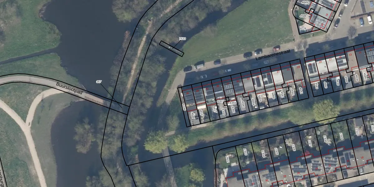 Lambarenestraat 45 is gelegen op kadastraal perceel DEL00R4848. Deze kadastrale aanduiding is uniek en wordt gebruikt door het Kadaster om eigendomsrechten en andere zakelijke rechten vast te leggen. Het perceel maakt onderdeel uit van de kadastrale gemeente Delft.