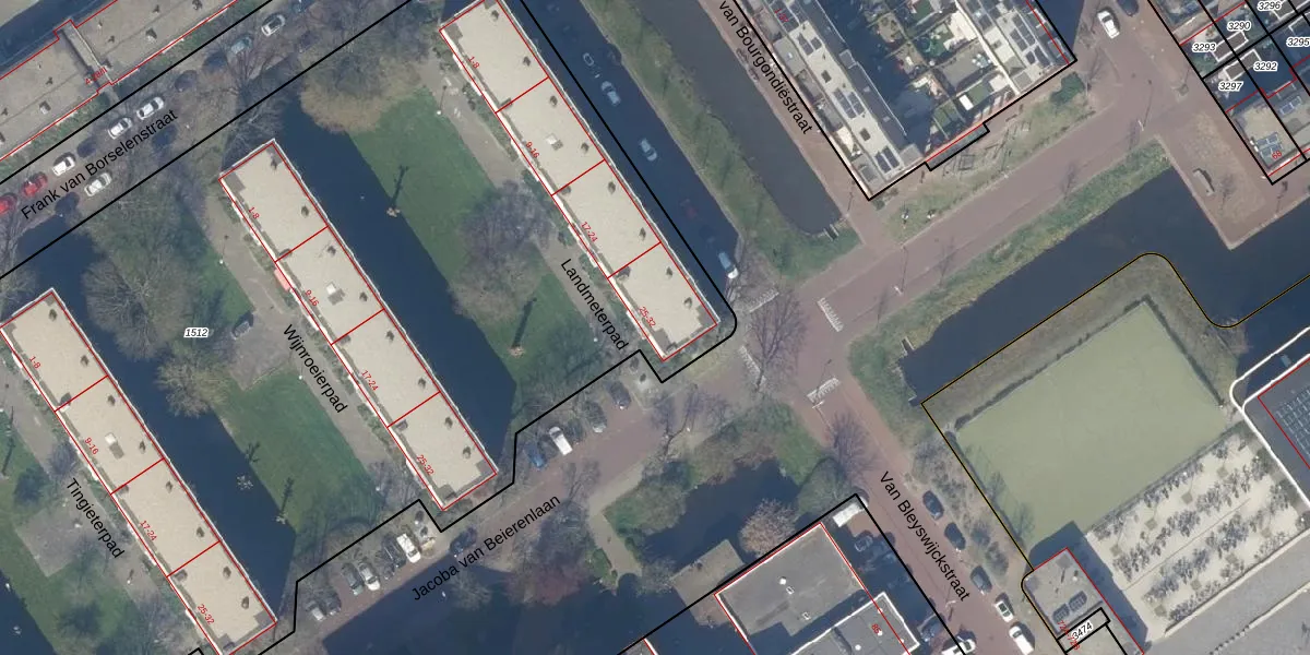 Het perceel waarop het adres ligt is DEL00-O-1512. De afkorting 'DEL00' staat voor kadastrale gemeente Delft. De gemiddelde perceeloppervlakte in de kadastrale gemeente Delft is 924,69 m². Dit perceel is met zijn 9983 m² dus groter dan gemiddeld. Het grootste perceel in de kadastrale gemeente is 64,1 ha. Het kleinste perceel heeft een oppervlakte van 0 m². Op het perceel liggen in totaal 128 adressen. De huidige grenzen van het perceel zijn digitaal in de Basisregistratie Kadaster (BRK) geregistreerd op 09-10-2006.