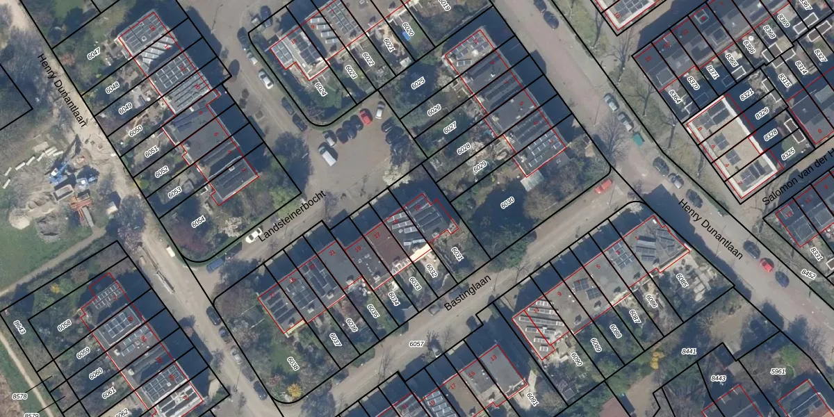 Gebruik de zoekbalk of klik op een perceel voor informatie over de adressen binnen dit perceel.
